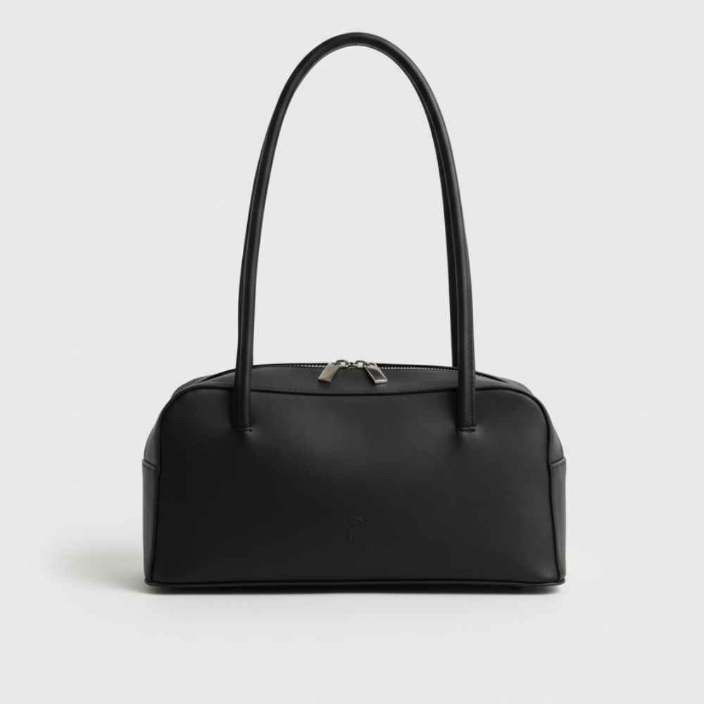 Effortlessly elegant, timeless in tone and consciously crafted — your refined baguette-style handbag in classic matte black, designed for elevated everyday style and sleek evening looks.