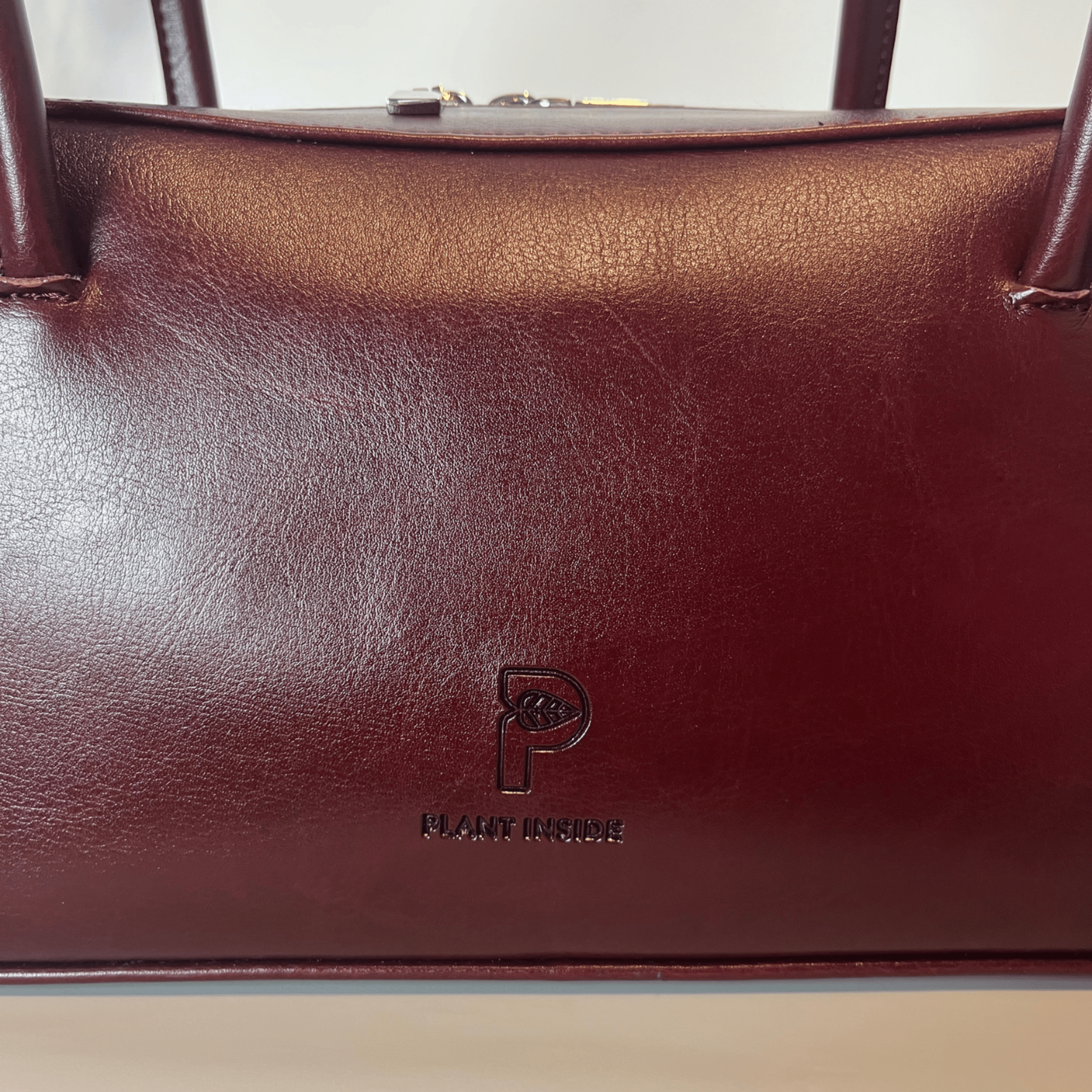 Crafted from innovative corn-based vegan leather — a PETA-certified, low-impact alternative with the luxurious look and feel of traditional leather. The luxury wine finish highlights the material’s richness while remaining completely cruelty-free.
