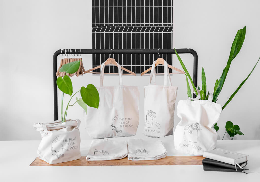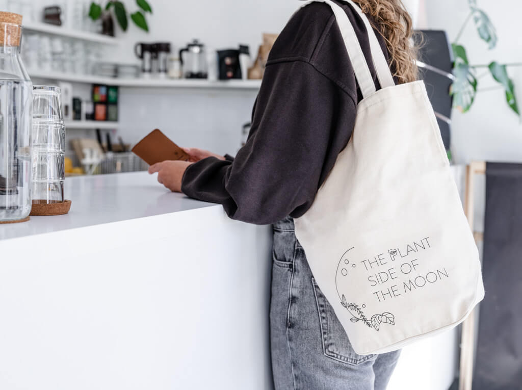 Vegane Tote Bag – Mittelgroß – "The Plant Side of the Moon"