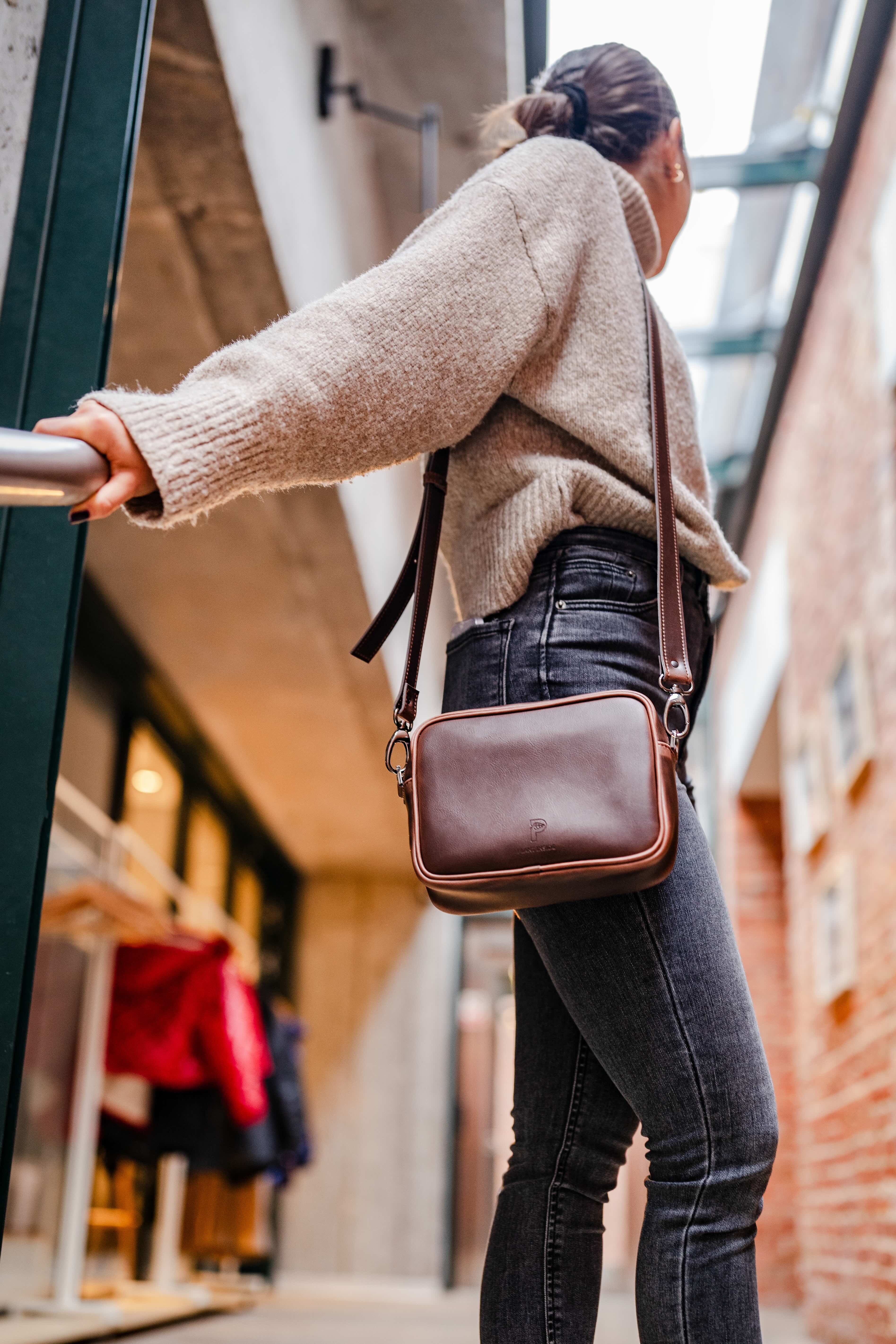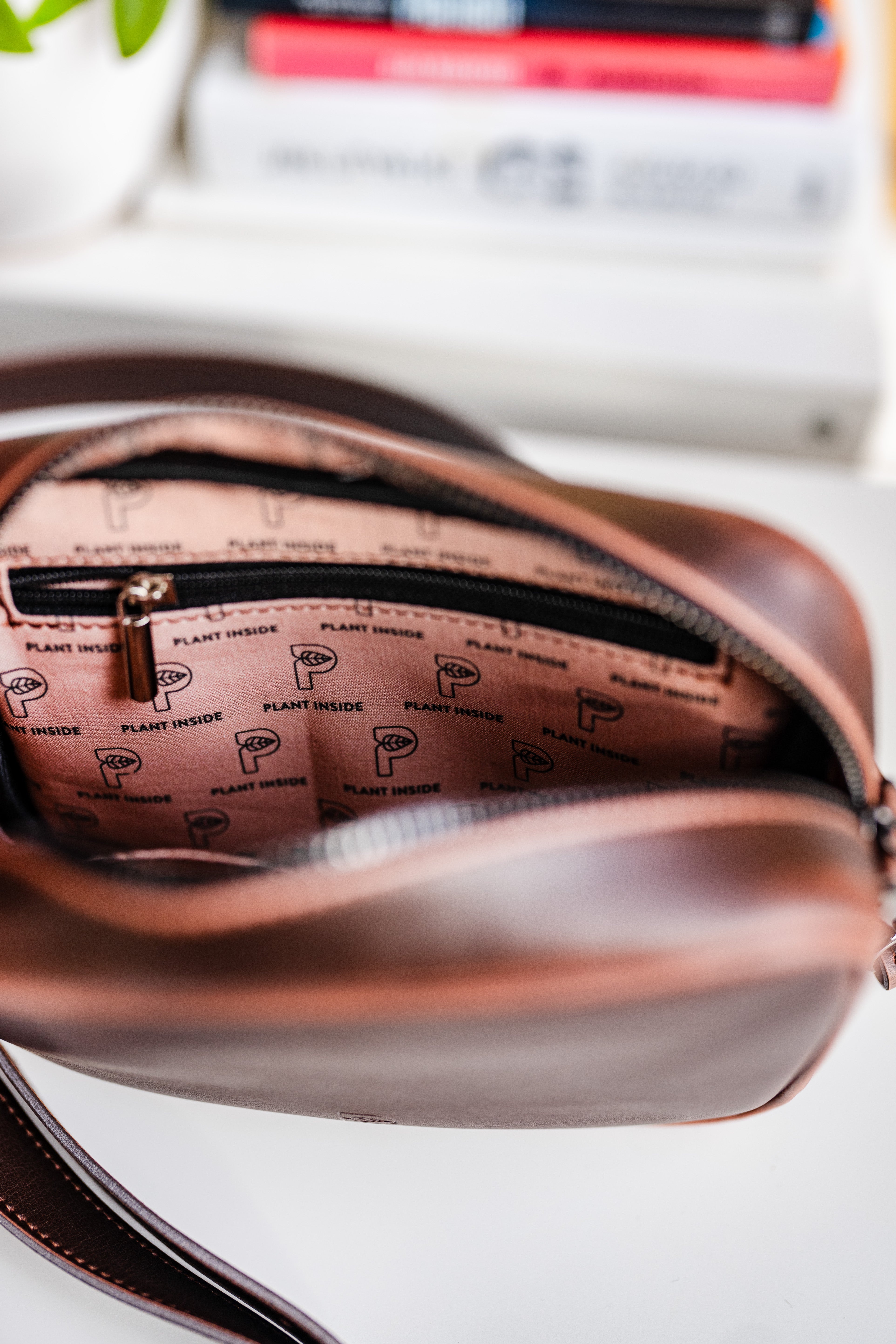 Unsere vegane Crossbody Bag wird zu 100 % in Europa handgefertigt und besteht aus pflanzenbasiertem, PETA-zertifiziertem Leder. Durch das minimalistische Design, die smarten Details und das geringe Gewicht ist sie ideal für unterwegs – egal ob in der Stadt, auf Reisen oder im Alltag.