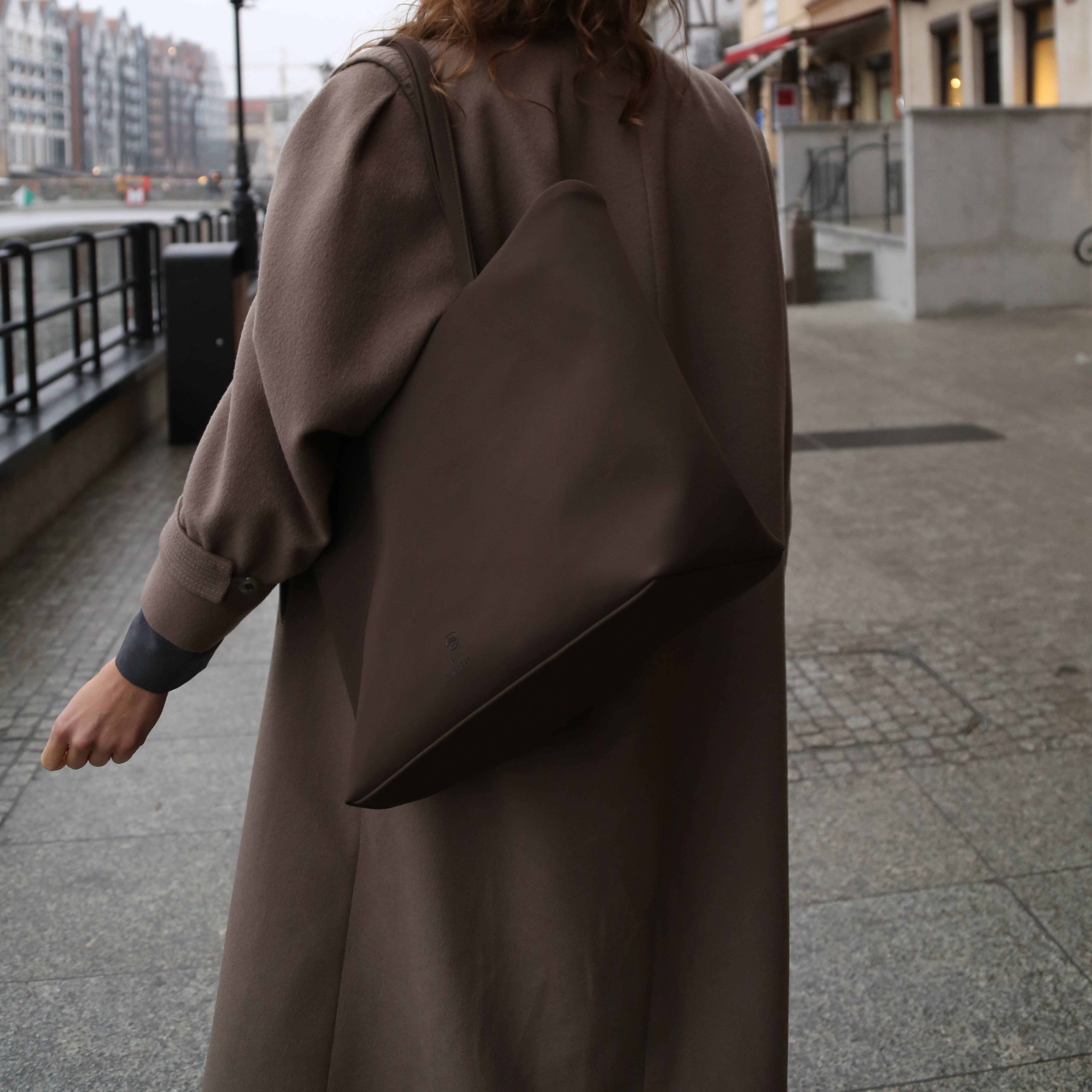 Gładkie, matowe wykończenie w głębokim, ziemistym brązie, które dopełnia każdą stylizację — od oversize’owych płaszczy po swobodne weekendowe zestawy.